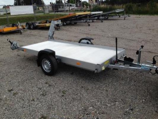 Rahmen verschweißt komplett feuerverzinkt, , Bereifung: 165/70R13C, Achsen: 1, Knott Achse Spezial, V-Zugeinrichtung feuerverzinkt, Bordwände 50 mm Alu eloxiert auf 3 Seiten fest, Boden aus wasserdichter Siebdruckplatte 15 mm, mechanische Zentralverriegelung der Ladefläche, hydraulisch absenkbar, Stützrad, Kennzeichen aufklappbar, Kotflügel-Kunststoff, 2 Kunststoffkeile, kompakte Beleuchtungseinheit geschützt montiert 12 Volt, Elektrostecker 13-polig, 4 Stück Zurrbügeln versenkbar links/ rechts im V-Profil,